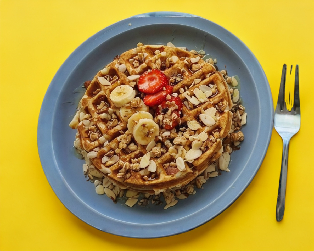 Wafle tradicional ( 2 pzs ) con frutas picadas y miel