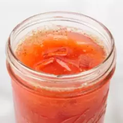 Spaghetti con camarones en salsa de jitomate, albahaca y chile.