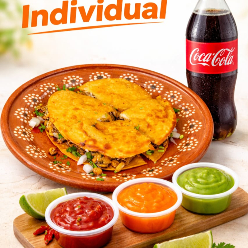 Deliciosa gringa de birria preparada con 2 tortillas de harina doraditas, rellenas de birria jugosa con queso perfectamente derretido, acompañada de cebolla fresca y cilantro que realzan su sabor en cada mordida. Incluye refresco Coca-Cola de 600 ml bien fría 🥤 y 3 salsas irresistibles: 🌶 salsa roja de árbol 🔥 salsa de habanero tatemado 🥑 salsa cremosa de guacamole Un combo perfecto para el an