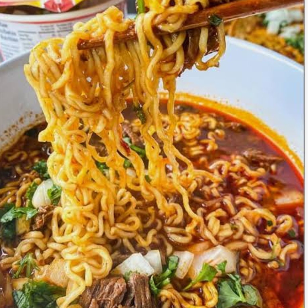 Ramen bañado en consomé de birria bien caliente, con carne de res suave , queso derretido , cebolla , cilantro, y un toque de limon . porcion grande , sabor intenso y perfecto para quitar el hambre de verdad.