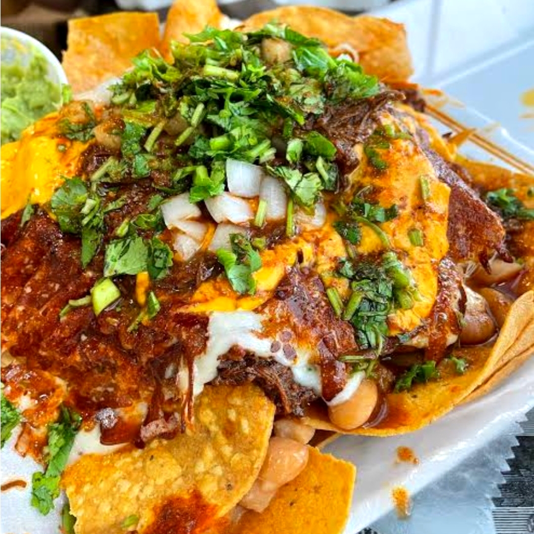 totopos recién hechos y crujientes , bañados en consomé de birria bien caliente , con carne de res 100 % birria en su jugo, crema , laminas de aguacate, cebolla morada , y queso panela fresco rayado. un antojo diferente , intenso y brutalmente sabroso.