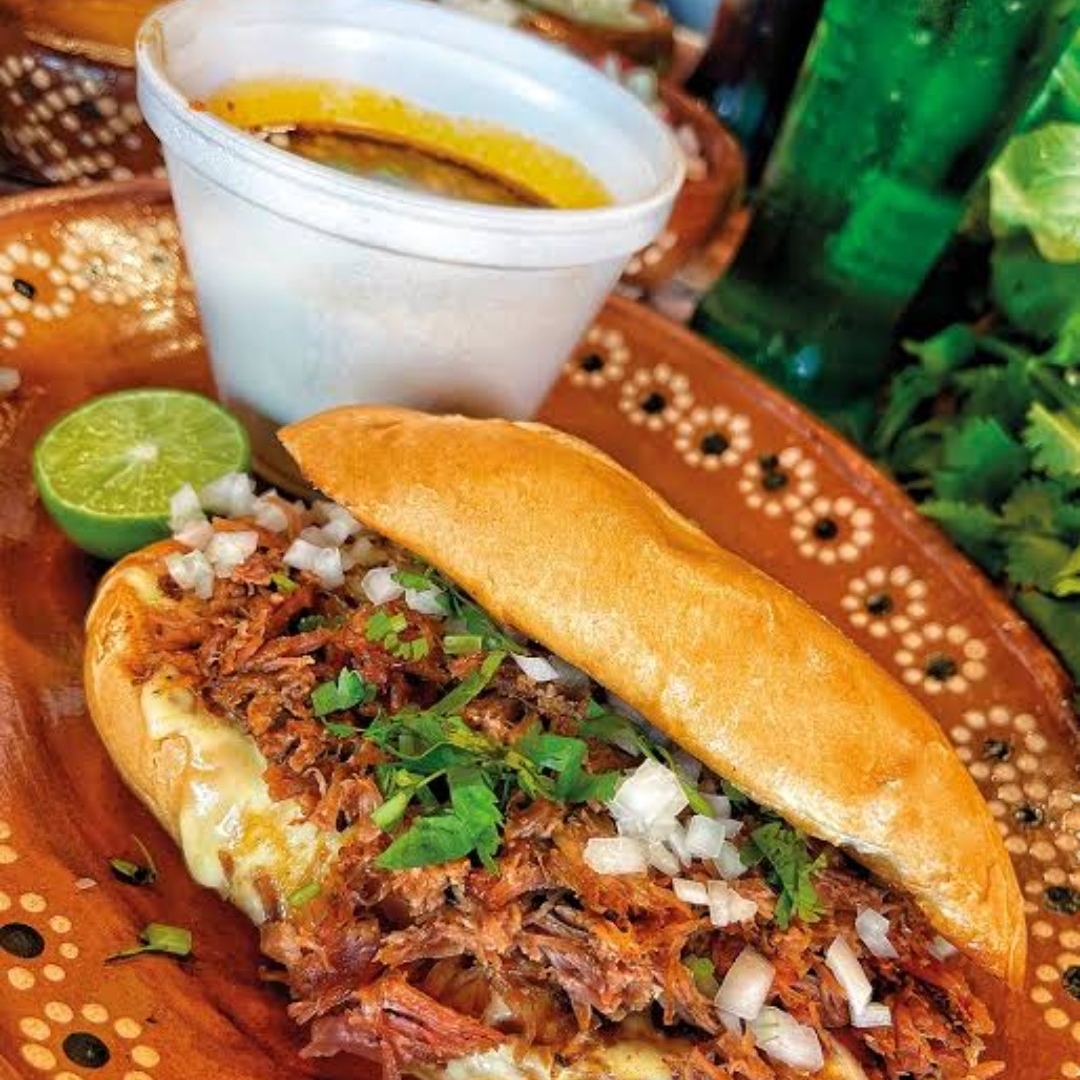 Torta de birria con queso