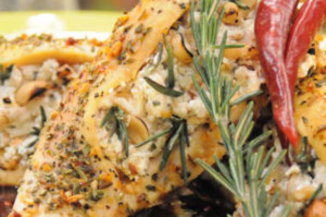 Jugosa pechuga con un toque de finas hierbas, acompañada con ensalada y arroz.