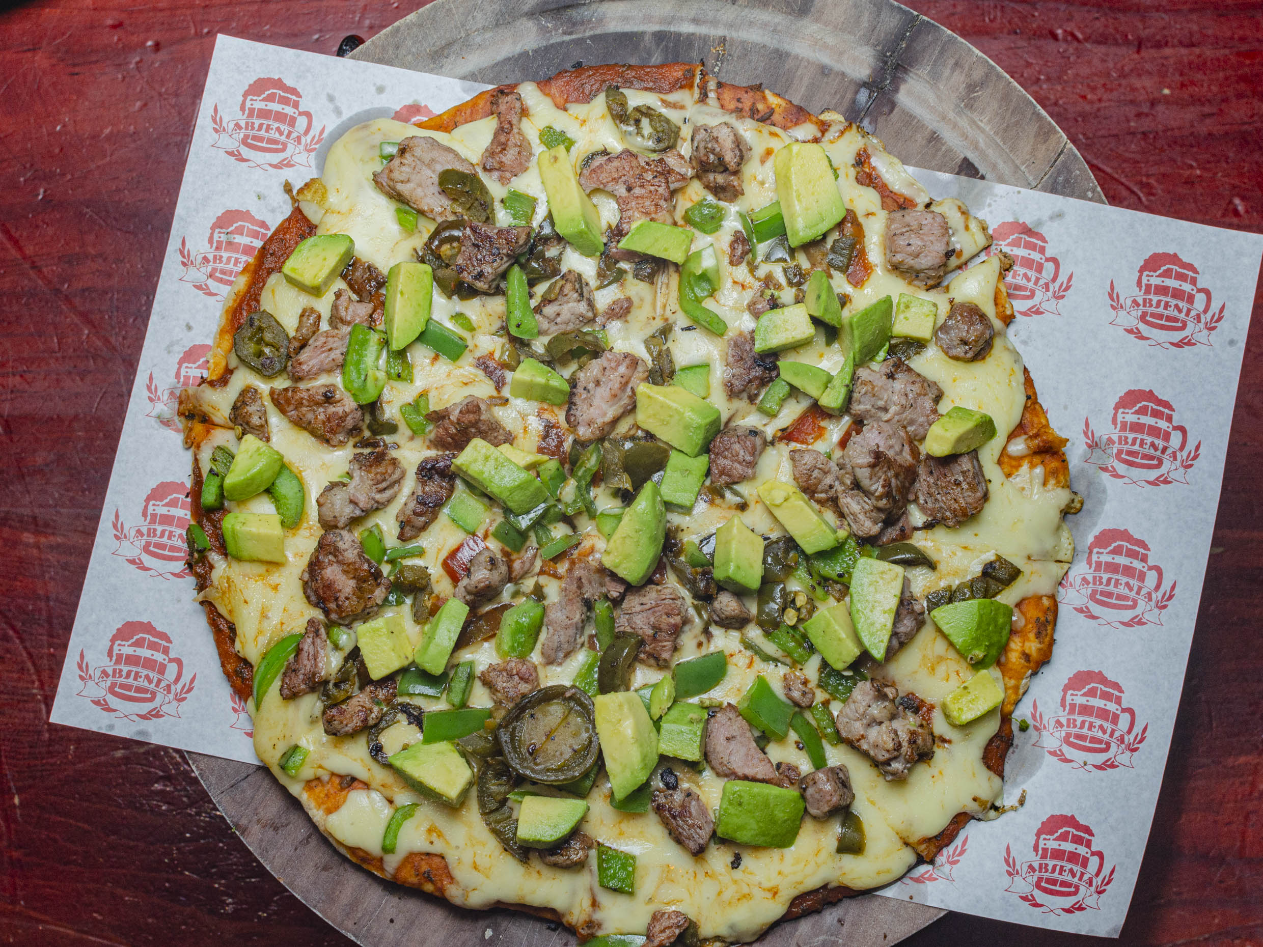 Arrachera, pimiento, jalapeño y aguacate.