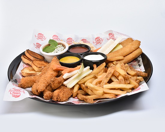 650gr de Tenders, 8pz de Dedos de queso, Papas francesa y Dip de espinaca.