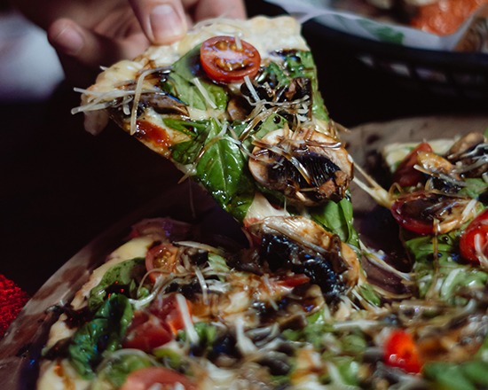 Salsa Alfredo, champiñones, espinaca y tomate cherry.