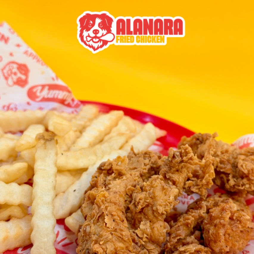 12 tenders o piernas de pollo, 2 papas francesas medianas. 1 aderezo AlaSecret 16 oz.