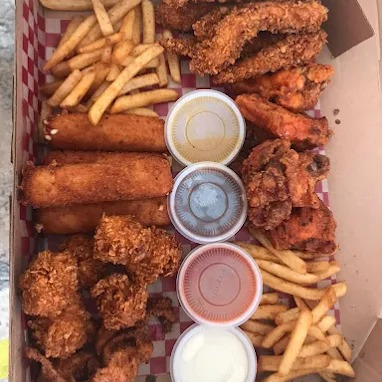 Lo mejor de Todo En Un Rico Box......Dedos de Queso Alas, Papas Fritas & Aderezos