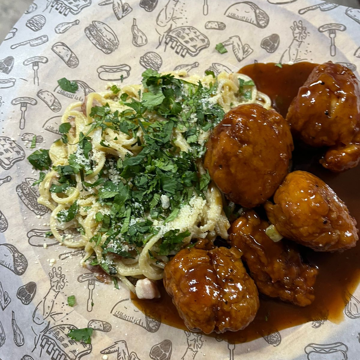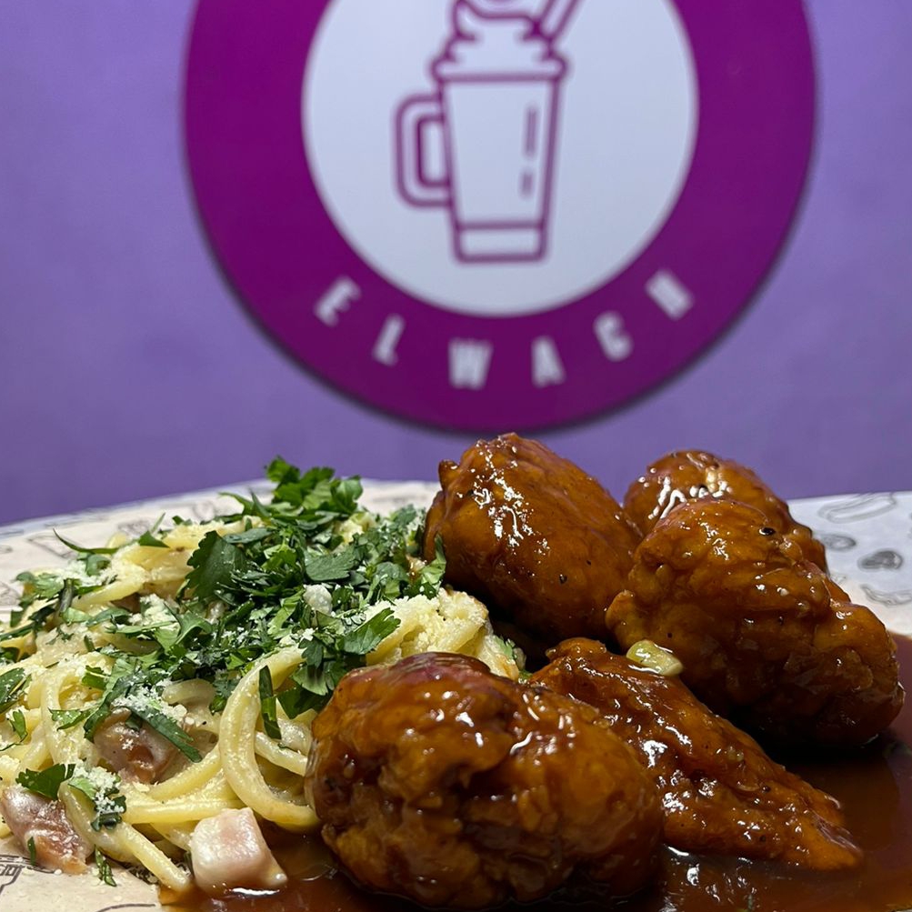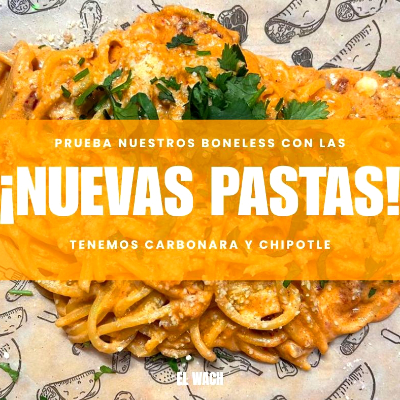 PASTAS chipotle con 6 PZAS de boneles bbq bañadas