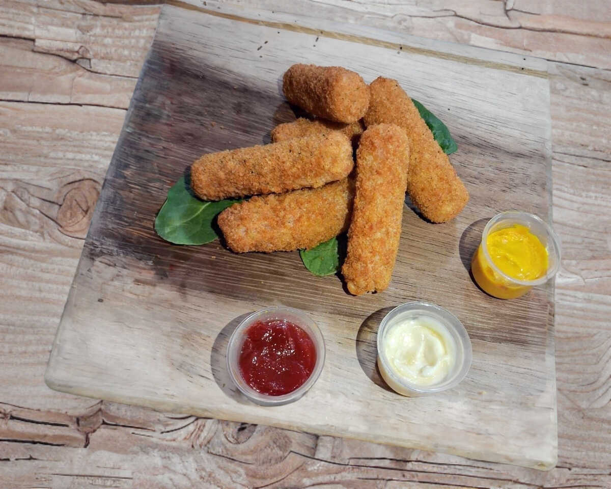 10 Deliciosos dedos de queso mozzarella gratinado y empanizado crocante con autentico mozzarella incluye aderezos; ketchup, mostaza y mayonesa. Empaquetado en aluminio y servitoalla para un envio oprtimo y caliente.