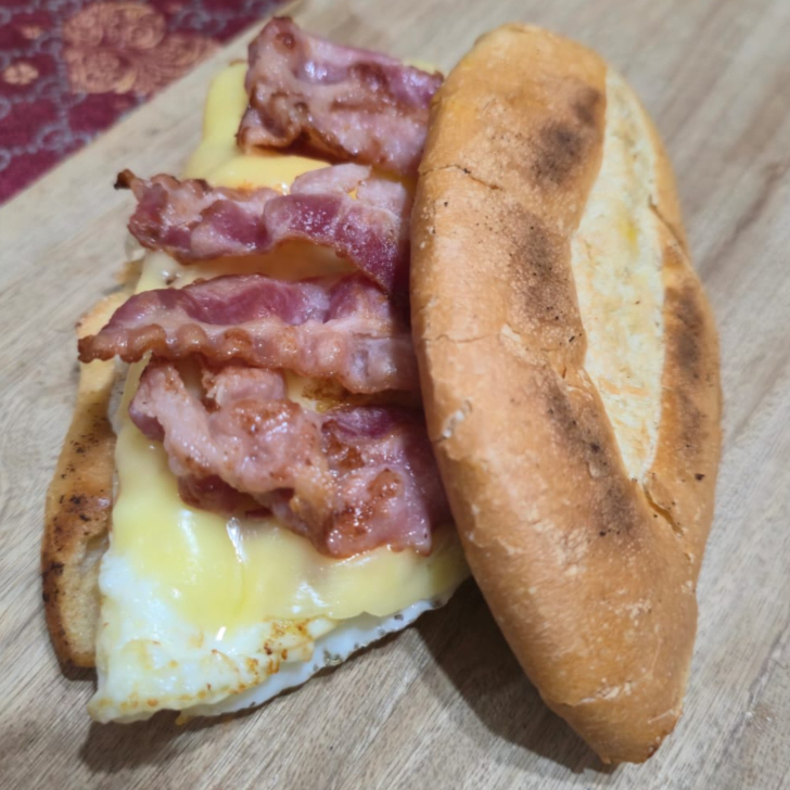 Contiene: Tocino, Queso, Huevo, Mantequilla y Pan Incluye: Ketchup, Mostaza, Mayonesa y jalapeños. Enviado en: Aluminio, servitoalla y bolsa, llega caliente y listo para comer.