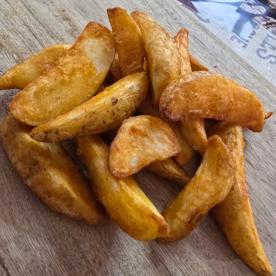 200g Papas Gajo LambWeston Costco acompañadas con aderezos y complementos; ketchup, mostaza, mayonesa y jalapeños