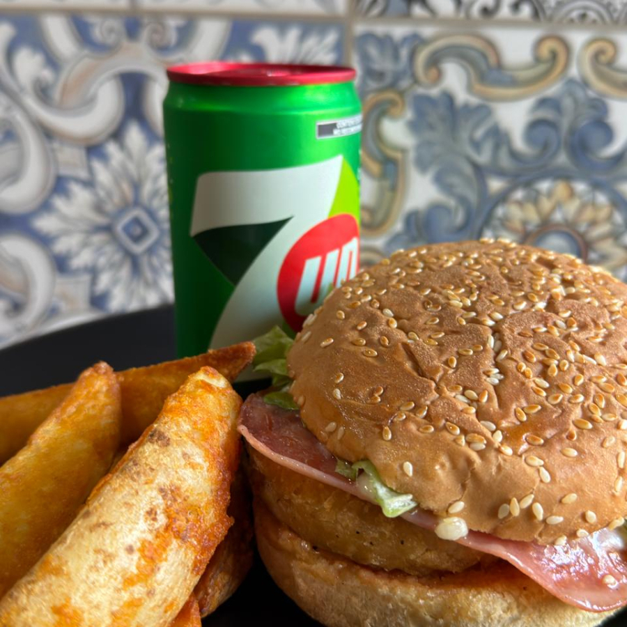 hamburguesa de pollo*1 + papas fritas*1 + Refresco 355 ml*1