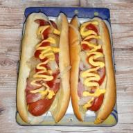 Salchichona Grande con Pan Brioche grande y tocino acompañado de queso y Cebolla Caramelizada