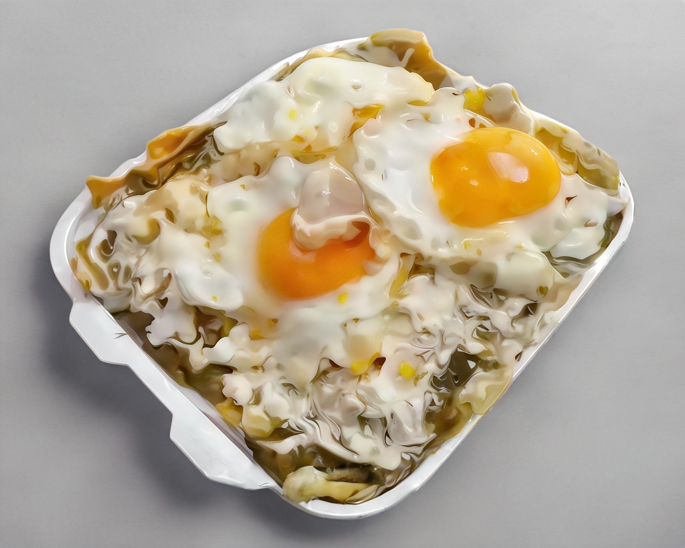 Chilaquiles de mole con 3 pzas de huevo estrellado, queso, crema y cebolla.