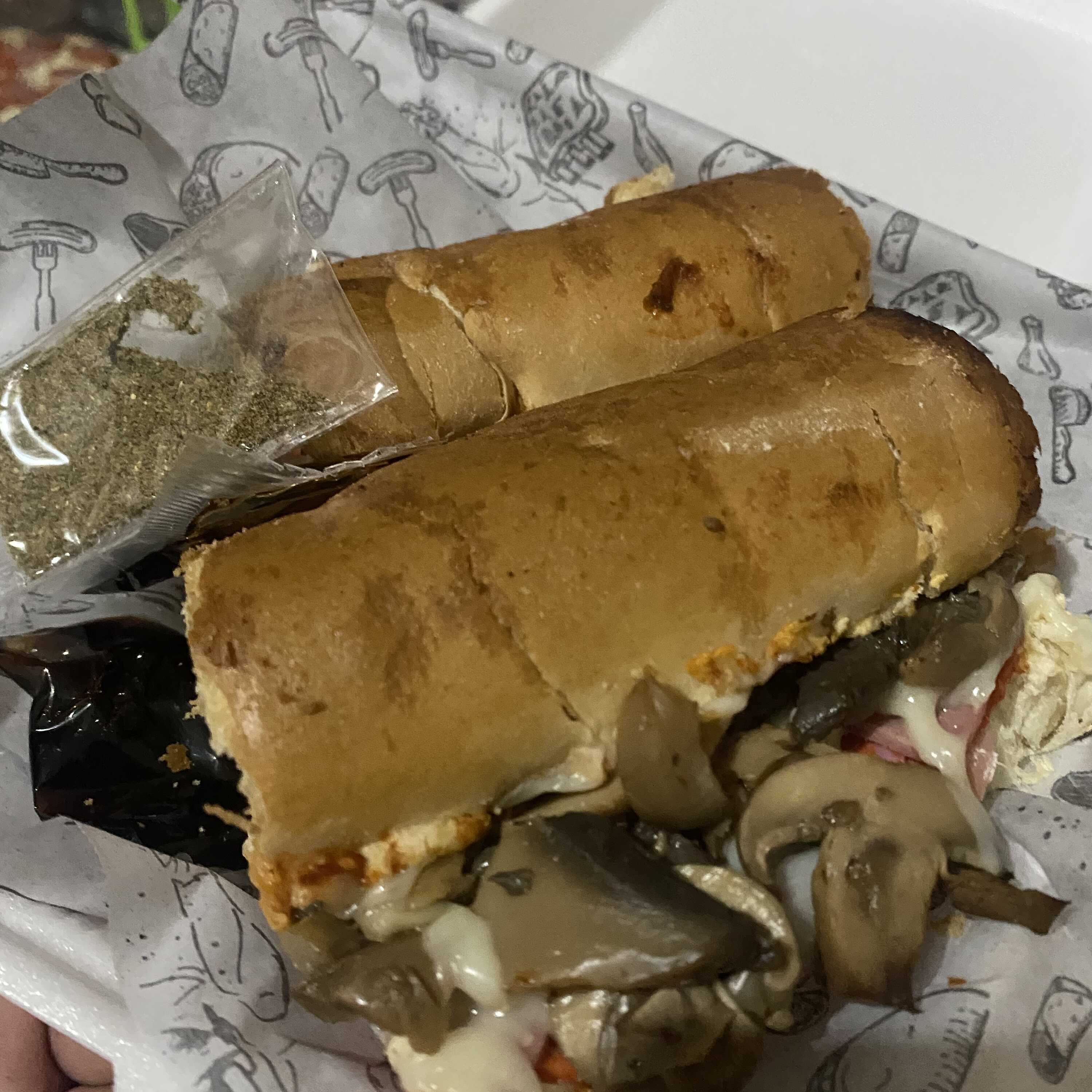Delicioso baguette con salsa de pizza, jamón, salami, pepperoni, queso manchego y champiñón.