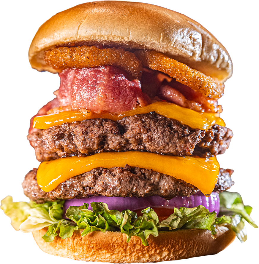 Jugosa hamburguesa de 2 carnes 100% de res bañadas en salsa Jack Daniel's, cubierta con doble queso cheddar gratinado, tiras de tocino y aros de cebolla.