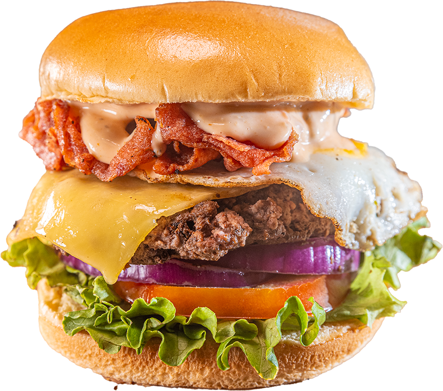 JUGOSA HAMBURGUESA 100% DE RES, CUBIERTA CON QUESO GOUDA GRATINADO, CON UN DELICIOSO HUEVO ESTRELLADO Y CORONADO CON TOCINO CRUJIENTE.