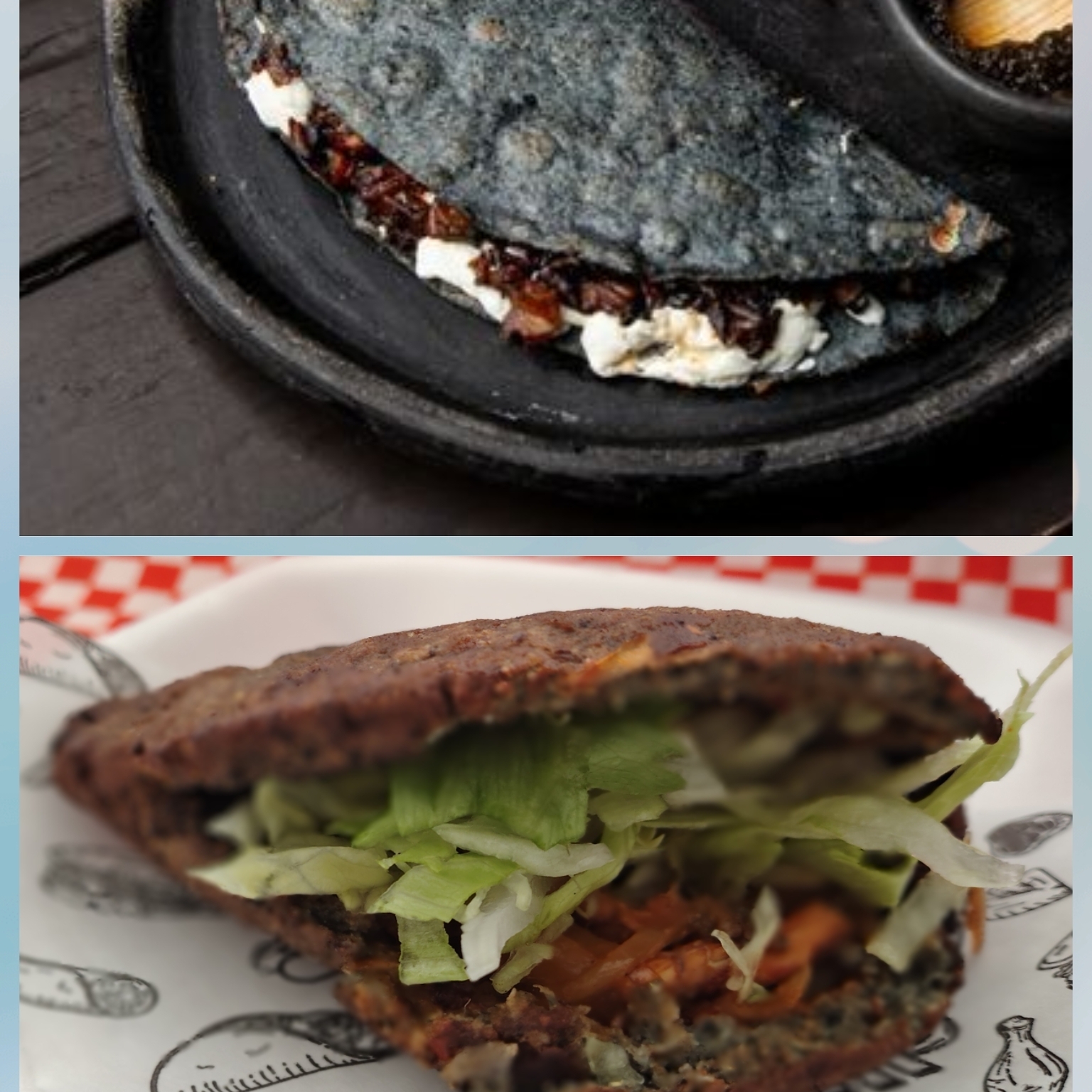 TORTILLA DE MASA AZUL, COMPLEMENTO, LECHUGA, SALSA Y CREMA