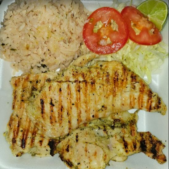 Jugosa pechuga de pollo, ya sea a la plancha o empanizada, con un delicioso sabor. Acompañada de arroz, ensalada de vegetales, frijolitos colados y tortillas.