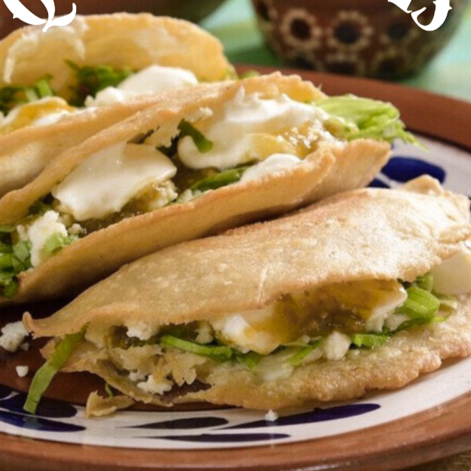 Quesadilla frita rellena de chicharron de cerdo en su salsa verde