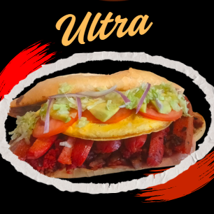 Deliciosa torta de doble bolillo,base de frijol, con carne asada roja, chorizo rojo, jamon, queso y huevo, acompañada de tomate, cebolla, lechuga y aguacate