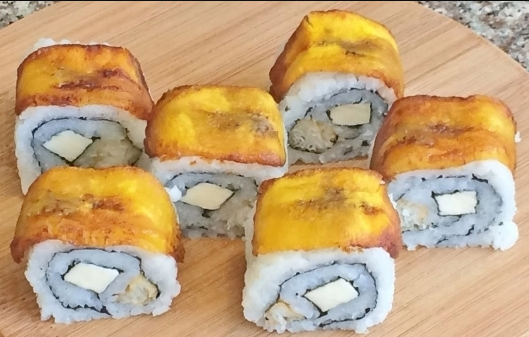 PF: queso crema y nuez caramelizada. PD: plátano empanizado, pollo empanizado y aguacate.
