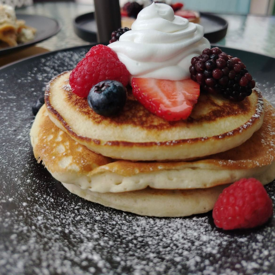 3 ESPONJOSOS HOT CAKES CON MANTEQUILLA Y GLASEADOS