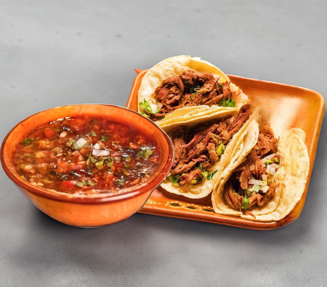 5 Tacos (Tortilla de Harina) y 1 Consomé Sencillo