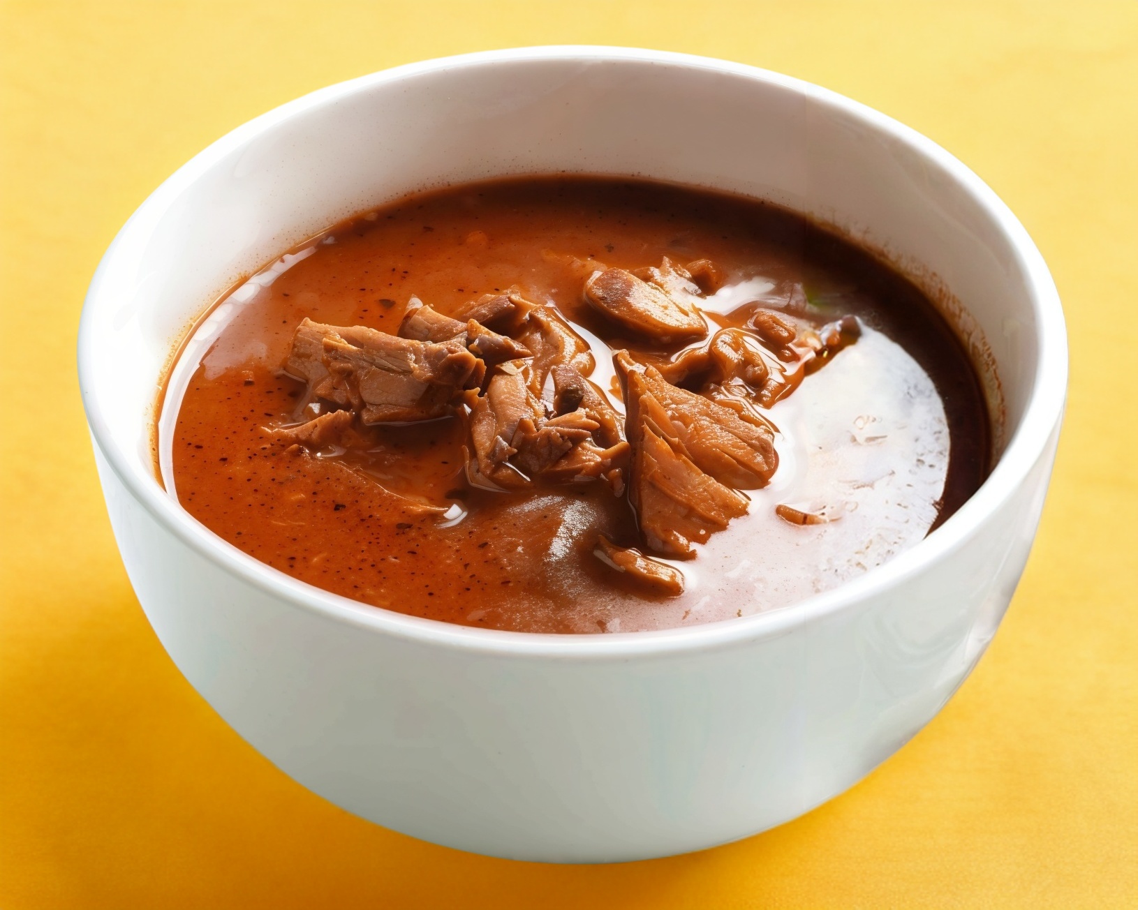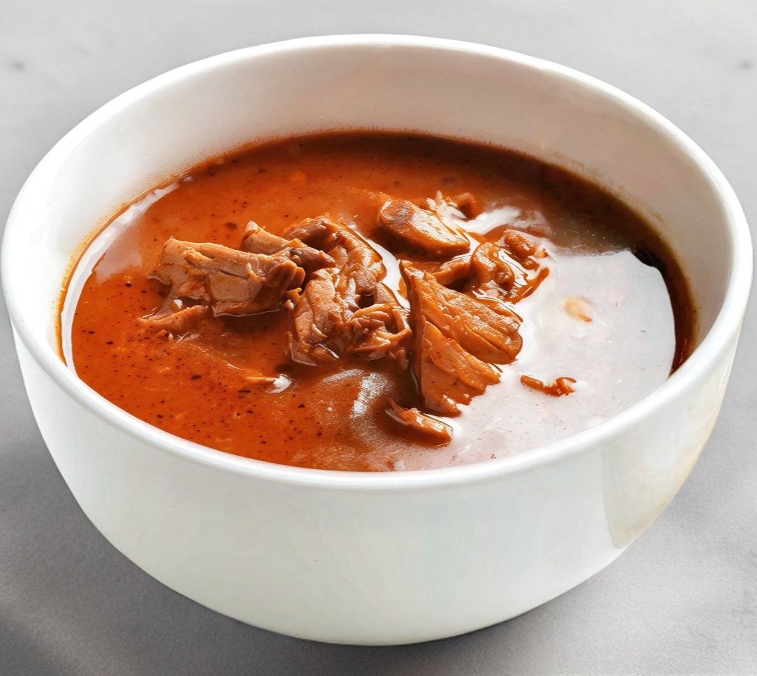 1/2 Lt de Consomé de Barbacoa de Res, con 100 gr de carne (en el consomé), incluye salsa de tomate verde con aguacate, cebolla con cilantro, tortillas, limones, salsa de chile habanero, todo por separado.