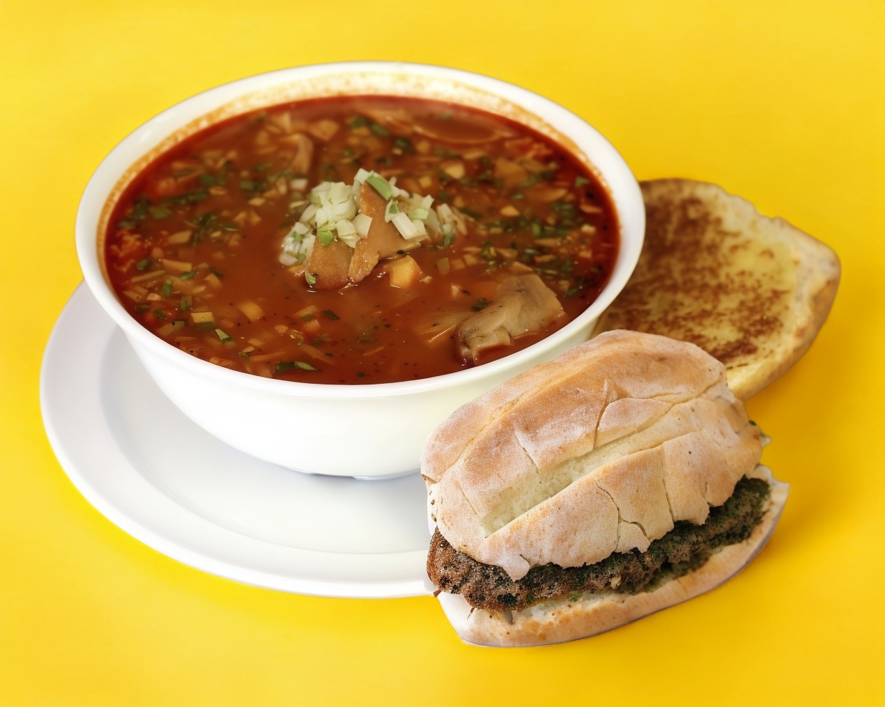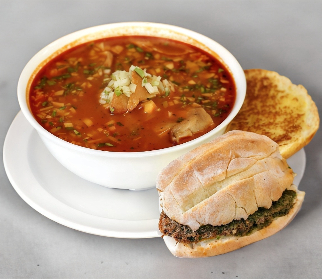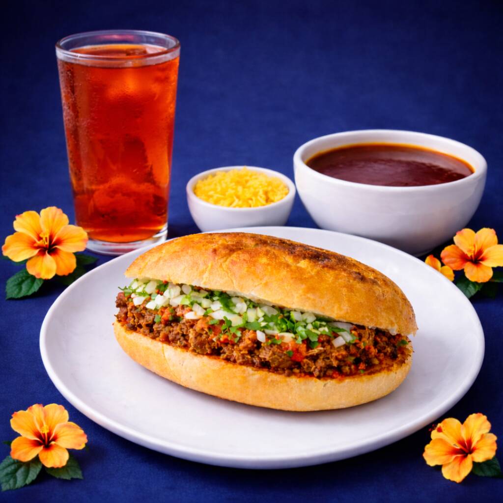 Combo de 1 Torta de Barbacoa de Res Estilo Tabasco, 1 Consomé de 250 ml, 1 Porción 150 Gr de Arroz a Elegir, 1 Refresco a Elegir