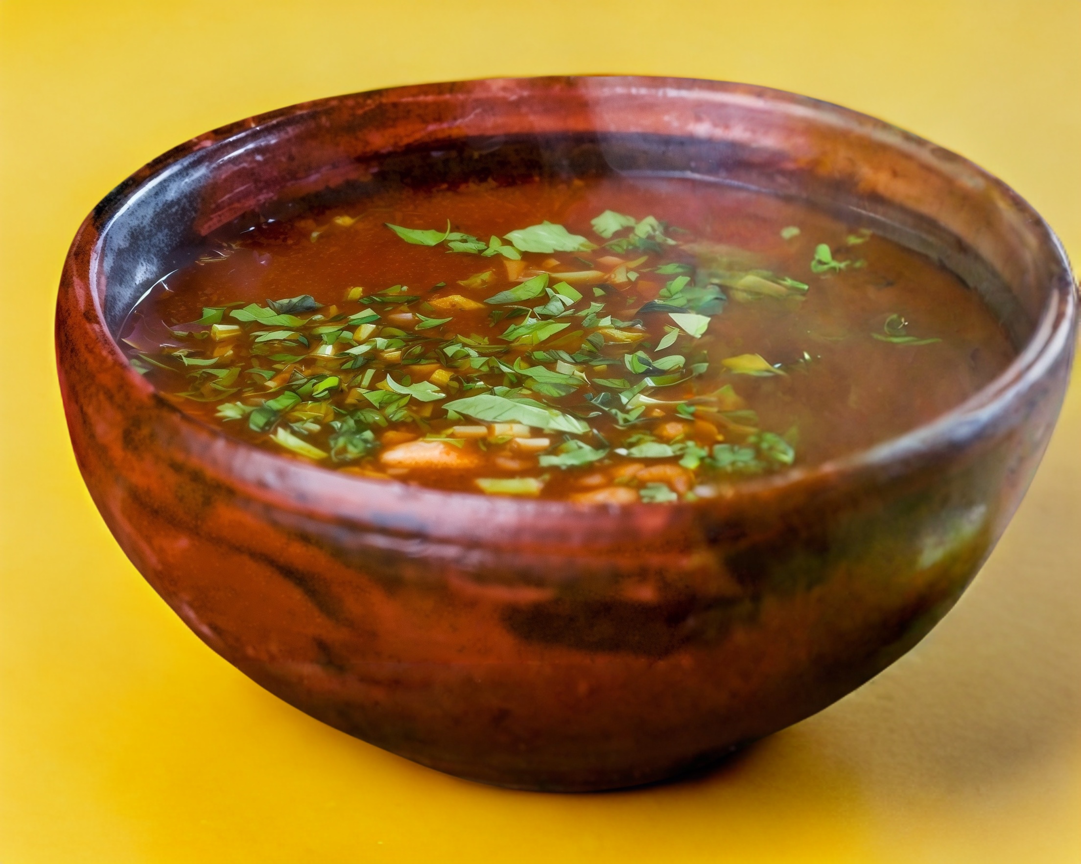 1/2 Lt de Consomé de Barbacoa de Res (sin carne), incluye salsa de tomate verde con aguacate, cebolla, cilantro, limones, salsa de chile habanero, todo por separado.