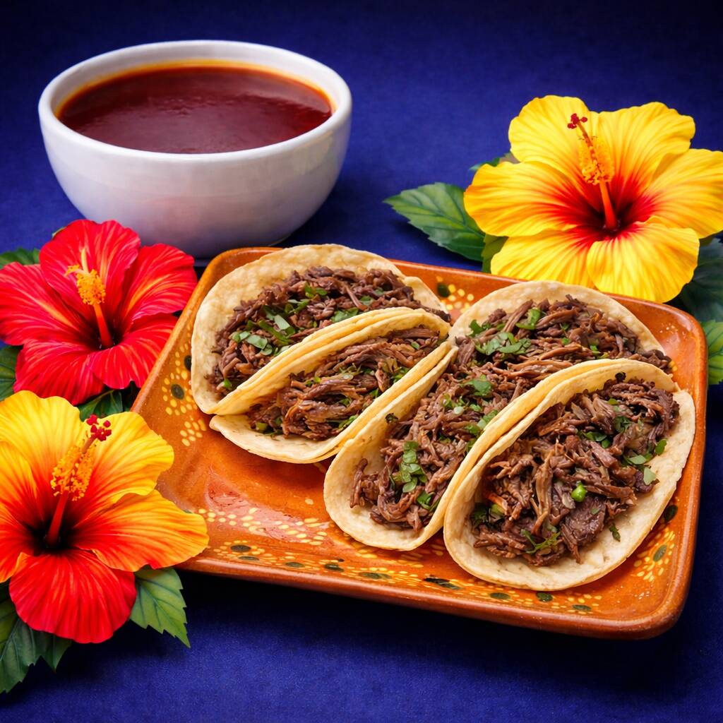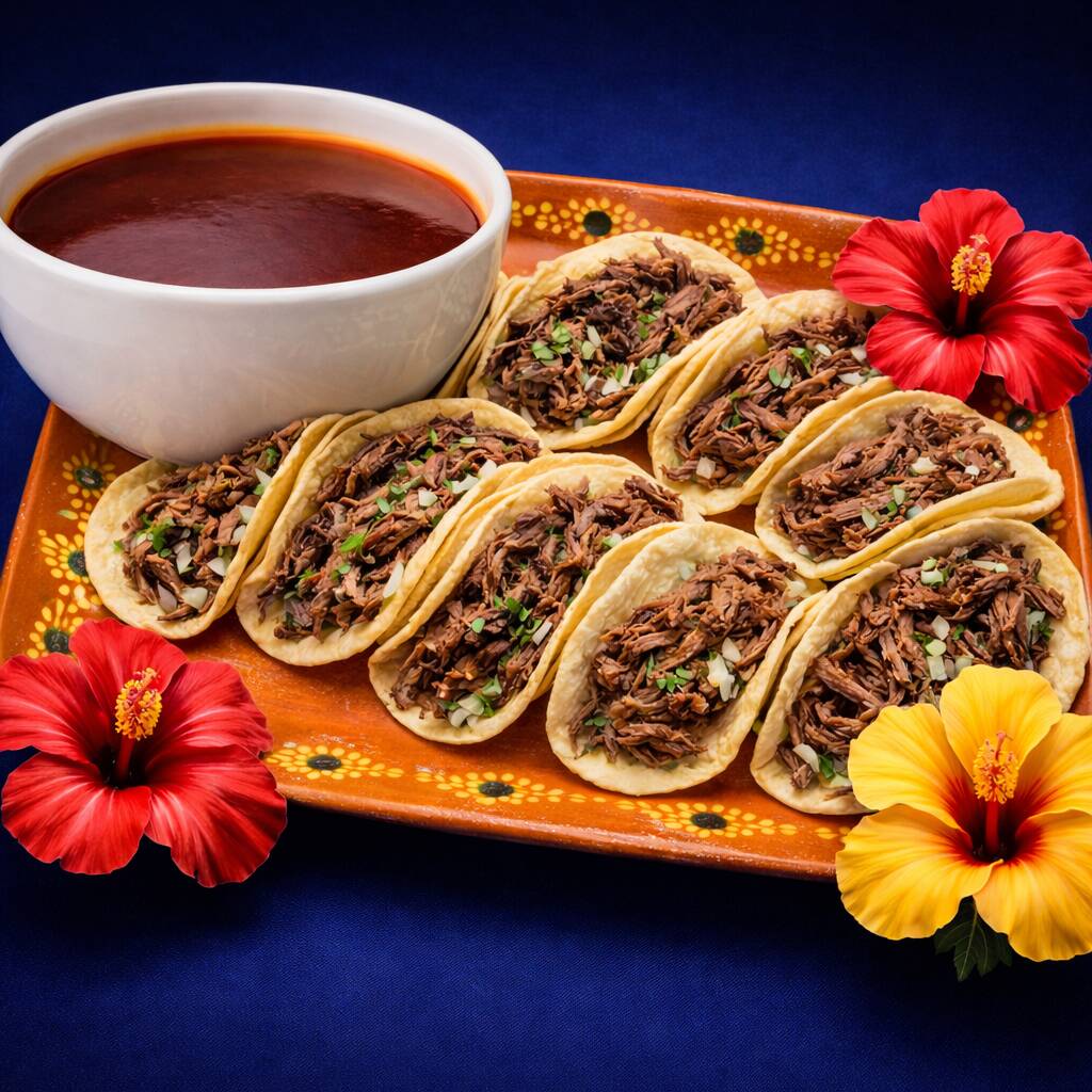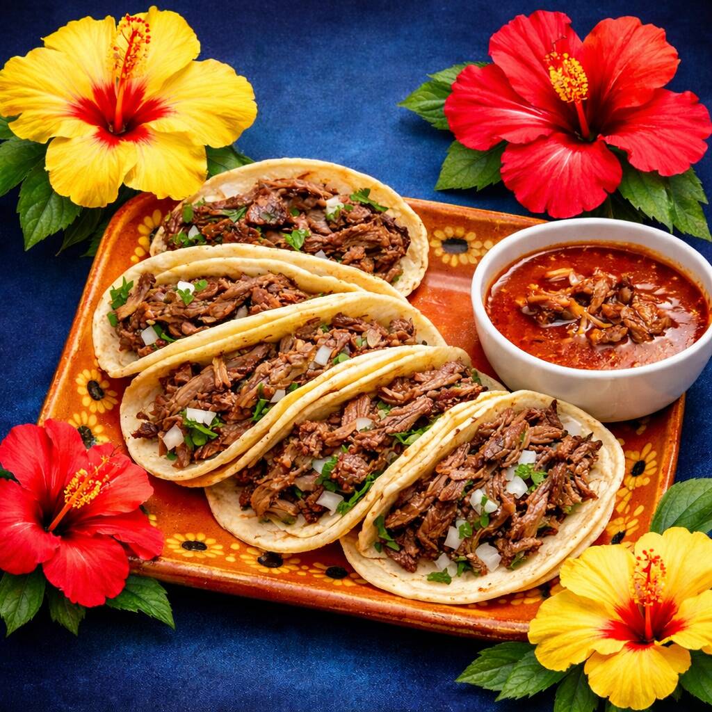 10 Tacos de Barbacoa de Res, Incluye Salsa Verde, Cebolla, Cilantro, Limones, Chile Habanero. Todo por Separado. (Foto Ilustrativa)