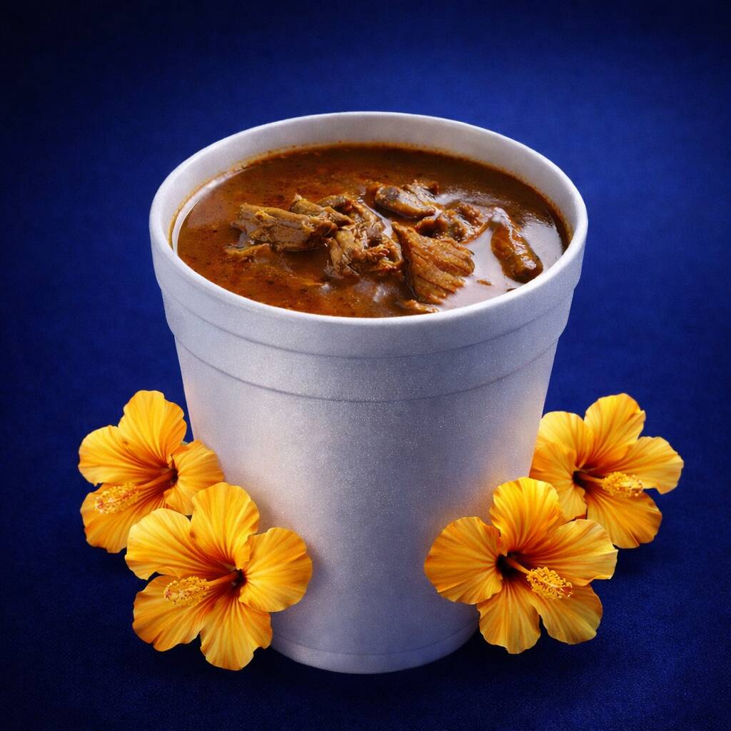 1 Lt de Consomé de Barbacoa de Res (sin carne), incluye salsa de tomate verde con aguacate, cebolla, cilantro, limones, salsa de chile habanero, todo por separado.
