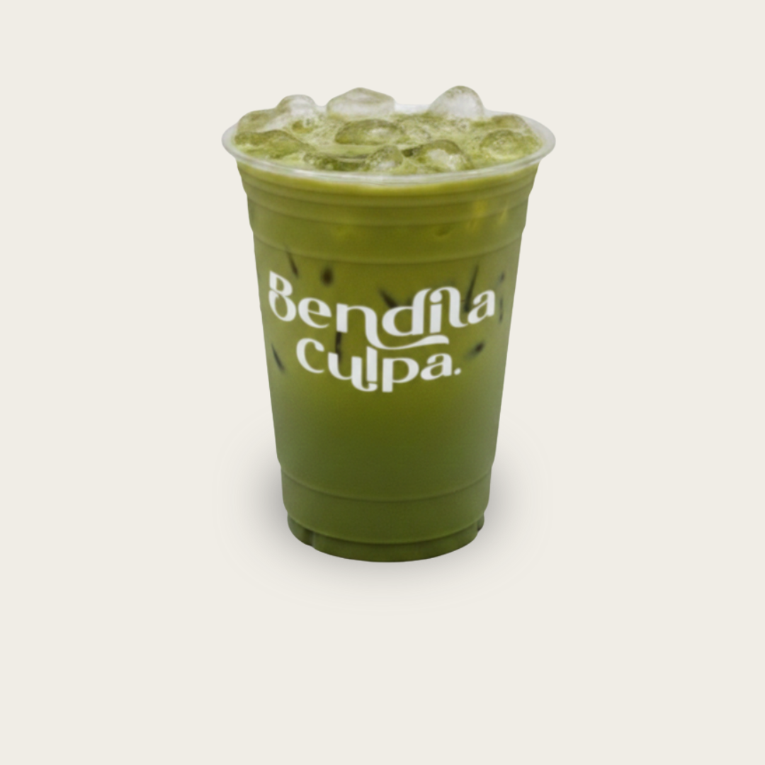Matcha ceremonial frío de 16 oz (473 ml) preparado con leche cremosa y coco.