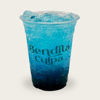 Soda italiana de 16 oz / 473 ml con combinación frutal de mora azul y kiwi, refrescante y vibrante.
