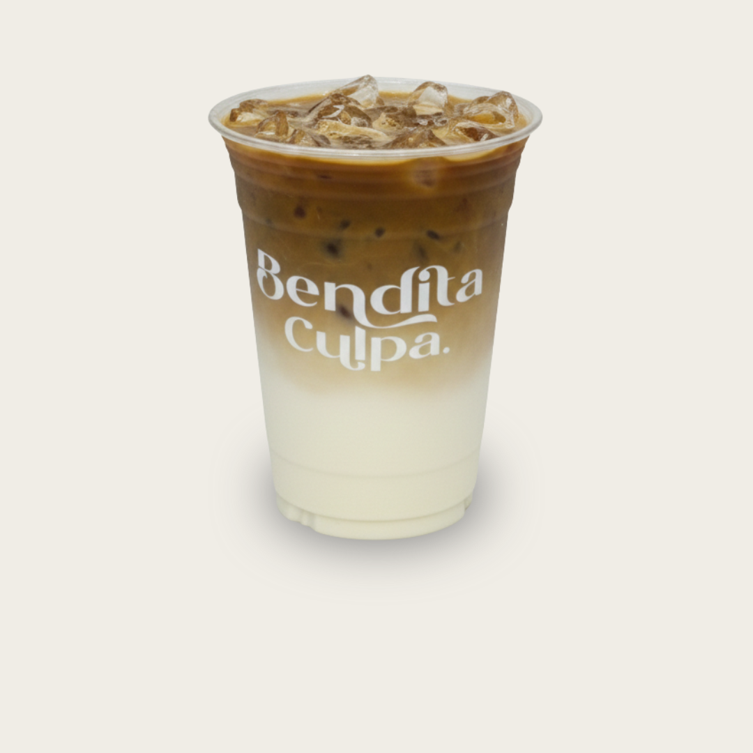 Latte frío de 16 oz (473 ml) preparado con espresso y leche cremosa. Refrescante y balanceado.