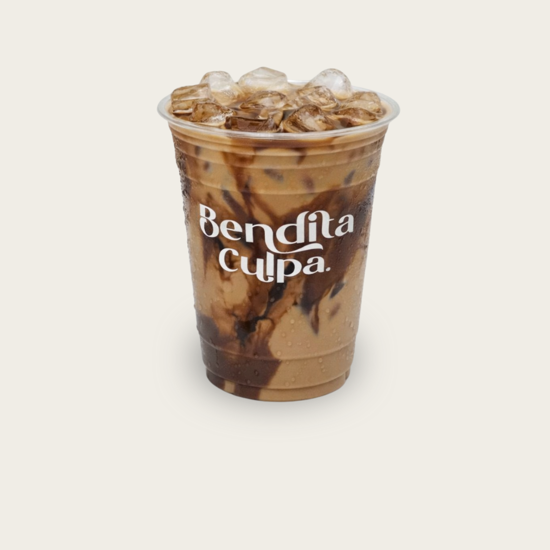 Latte frío de 16 oz (473 ml) preparado con espresso, leche cremosa y chocolate.