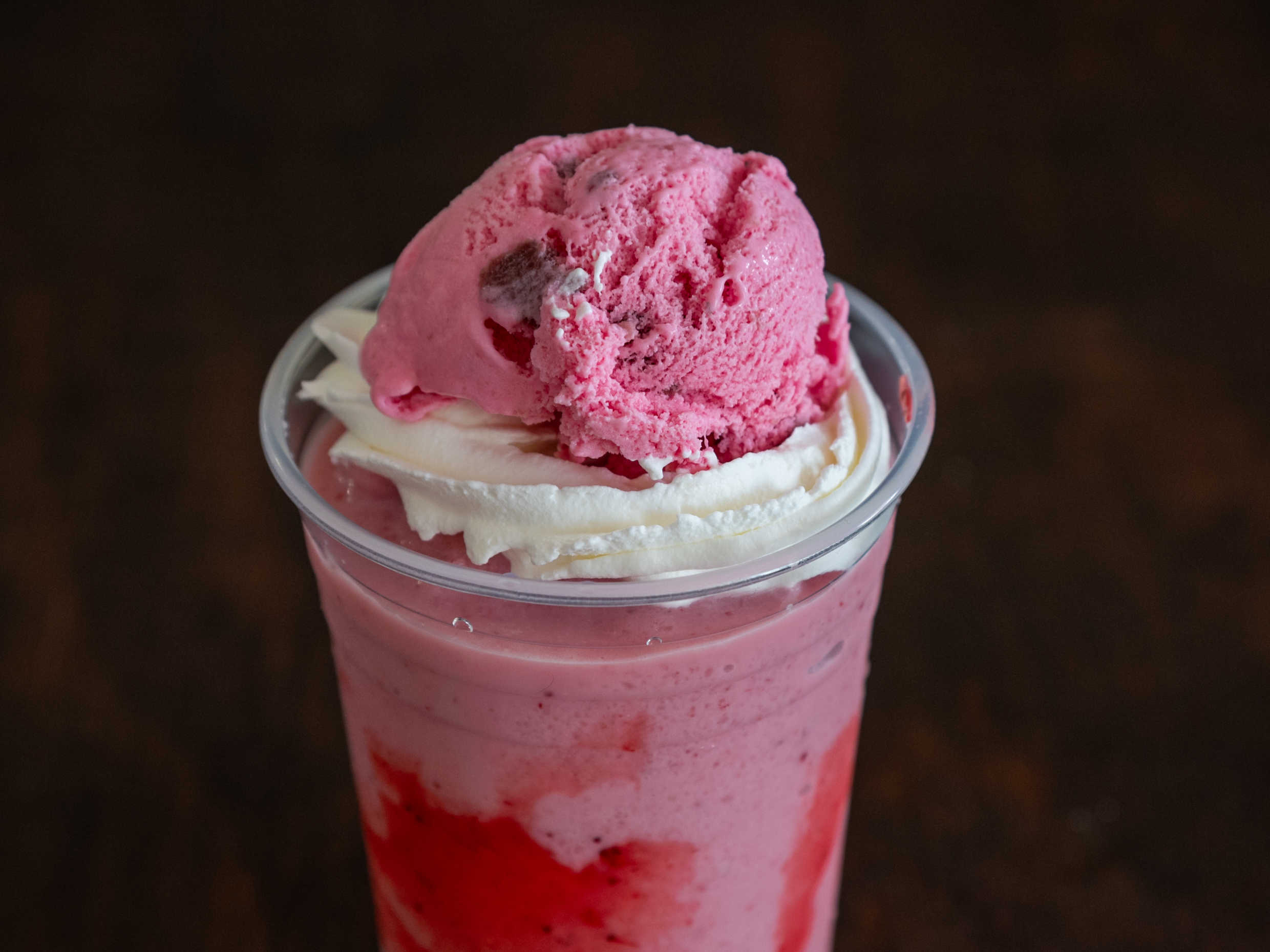 Con fresas, leche deslactosada, helado, crema batida, (600ml)