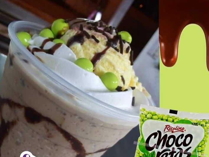 Con café, leche deslactosada, chocoretas, topping de crema batida y helado , cont. 600 ml