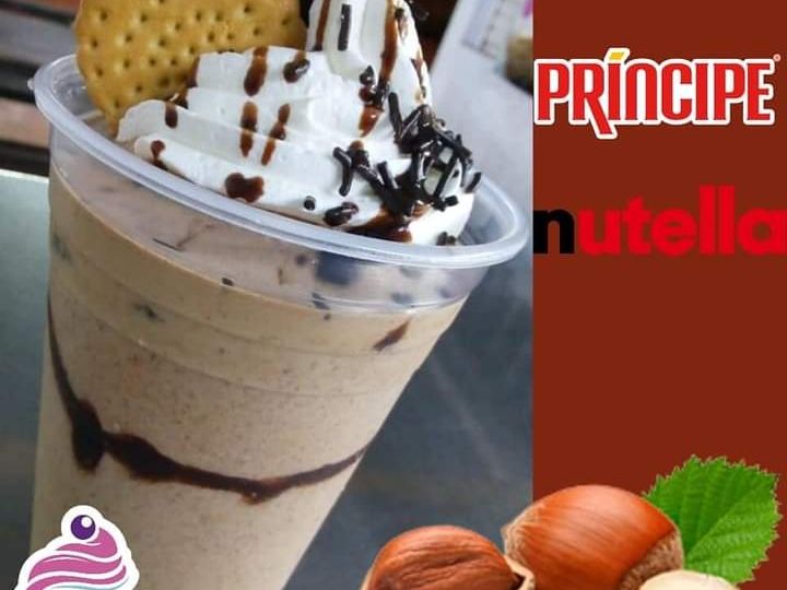 Con café, leche deslactosada, 🍫nutella, topping de crema batida, cont. 600 ml