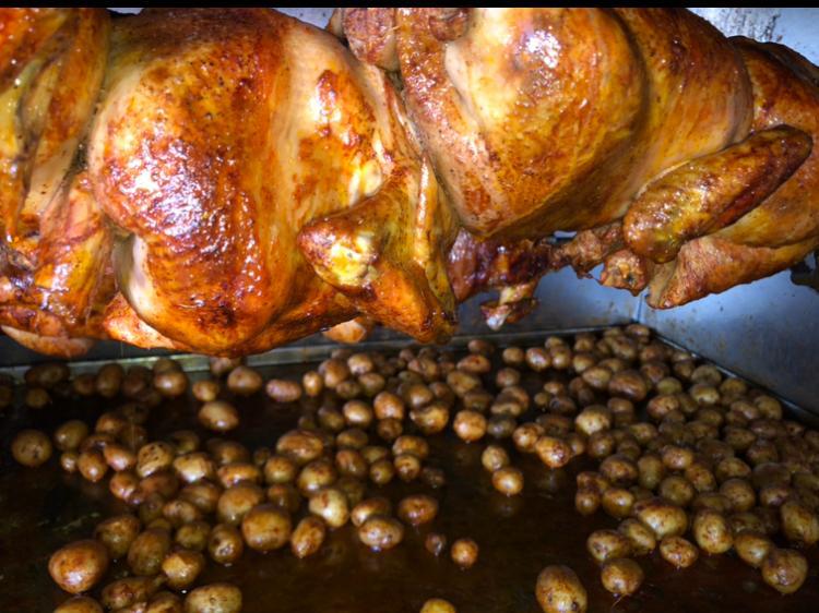 1 Pollo Rostizado Incluye: arroz, salsa de tomate, cebolla curtida y tortilla.