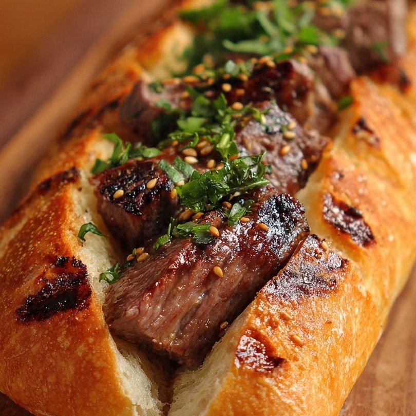 Deliciosa torta de francés con carne asada marinada