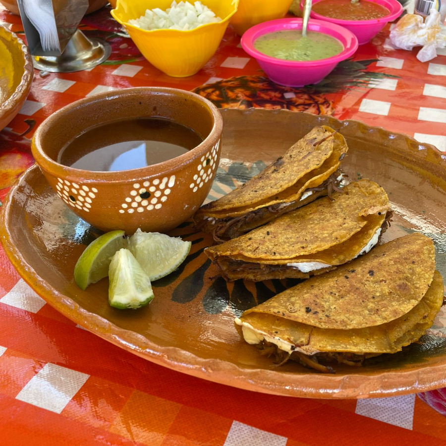 Incluye 1 Consomé, 3 Quesabirrias, 1 Agua fresca 500ml