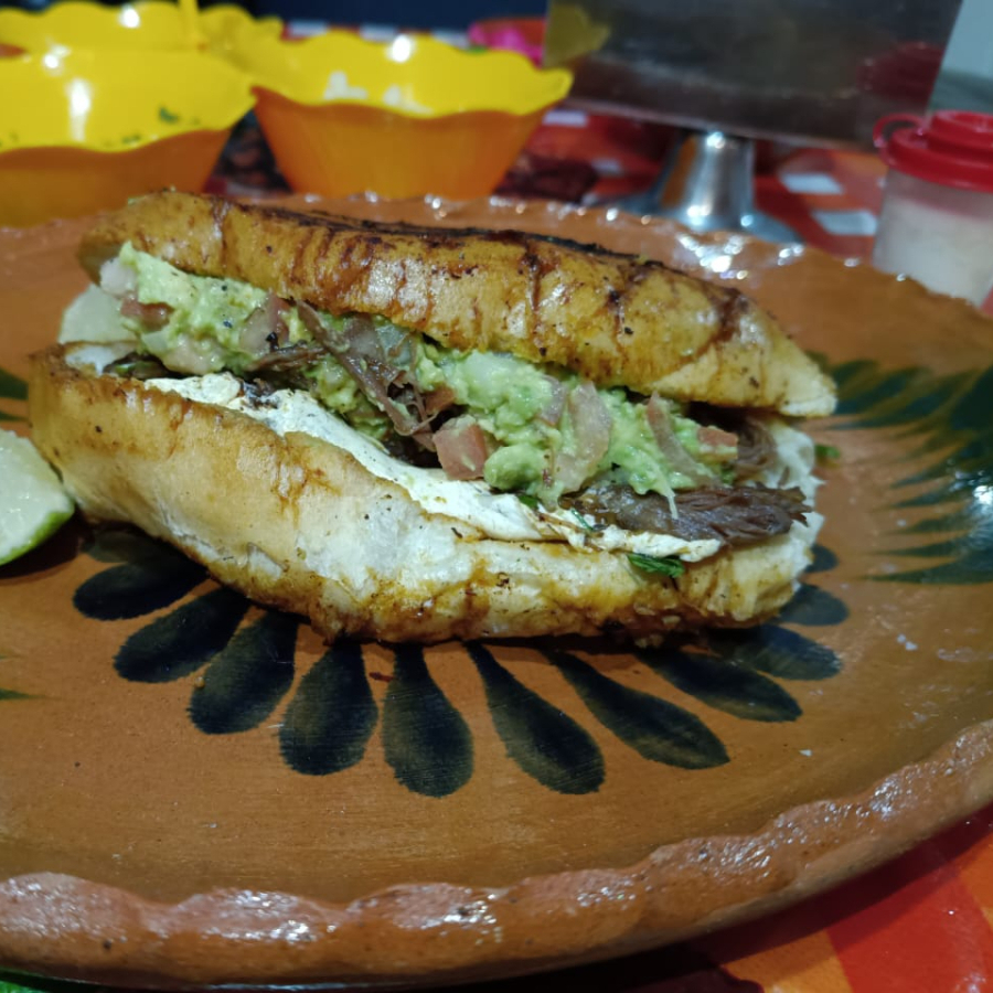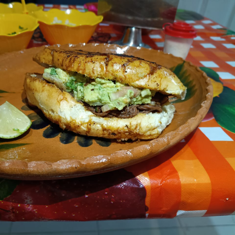 Bolillo, Carne de BIRRIA de res, Guacamole
