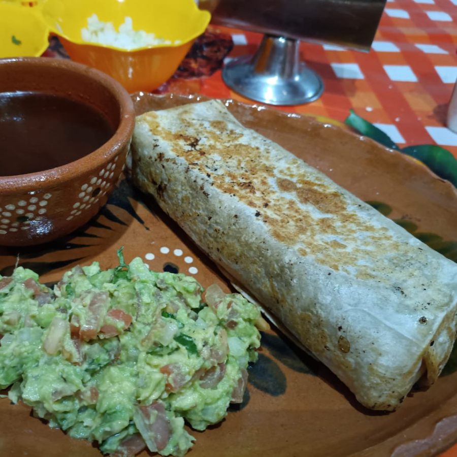 Incluye arroz, frijol, guacamole, carne de birria, queso, consomé de cortesía