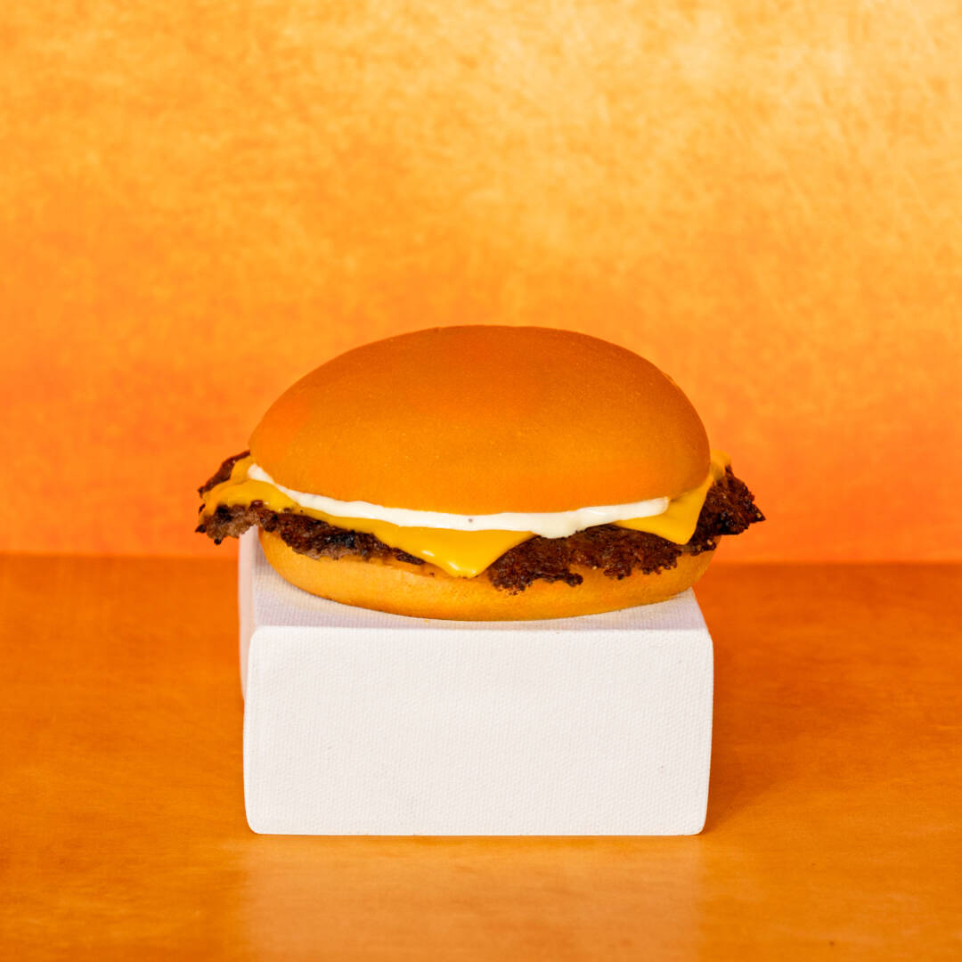 Carne black angus, queso americano, mermelada de tocino y aderezo de ajo.