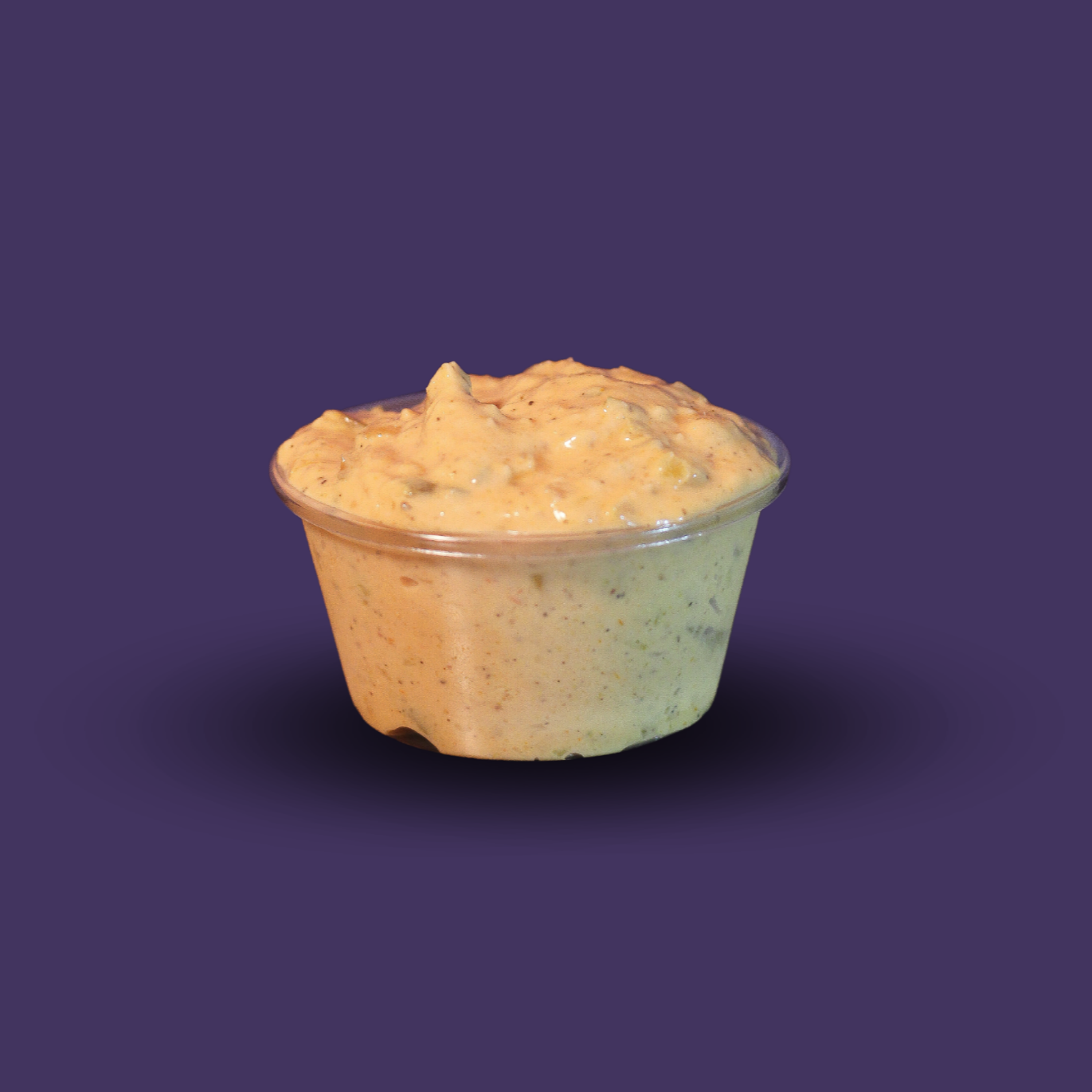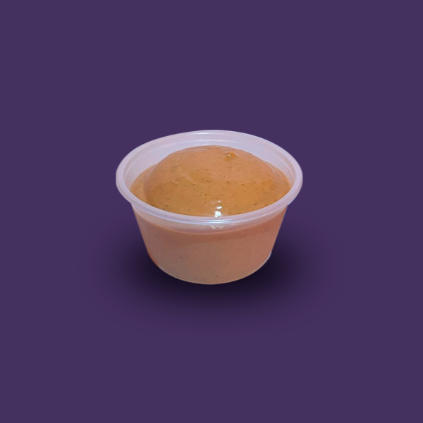 Papas a la francesa, aderezo de ajo y mermelada de tocino.
