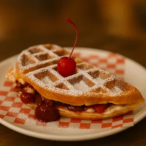 Deliciosa crepa/waffle relleno de jamón y el queso que gustes!, por fuera, un toque aderezo chipotle!, elige la masa que más te guste crepa o waffle, acompaña con una deliciosa bebida con tapioca.