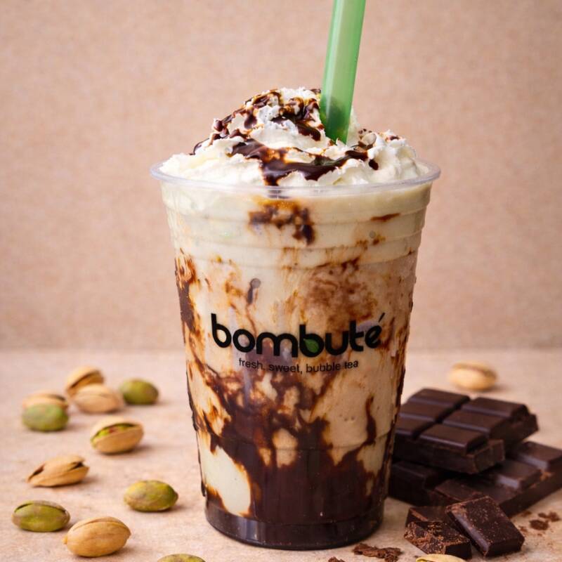 Smoothie de pistache con chocolate, intenso y indulgente, con un contraste perfecto entre lo cremoso y lo dulce. Disponible por tiempo limitado. Acompáñalo con tus complementos favoritos.